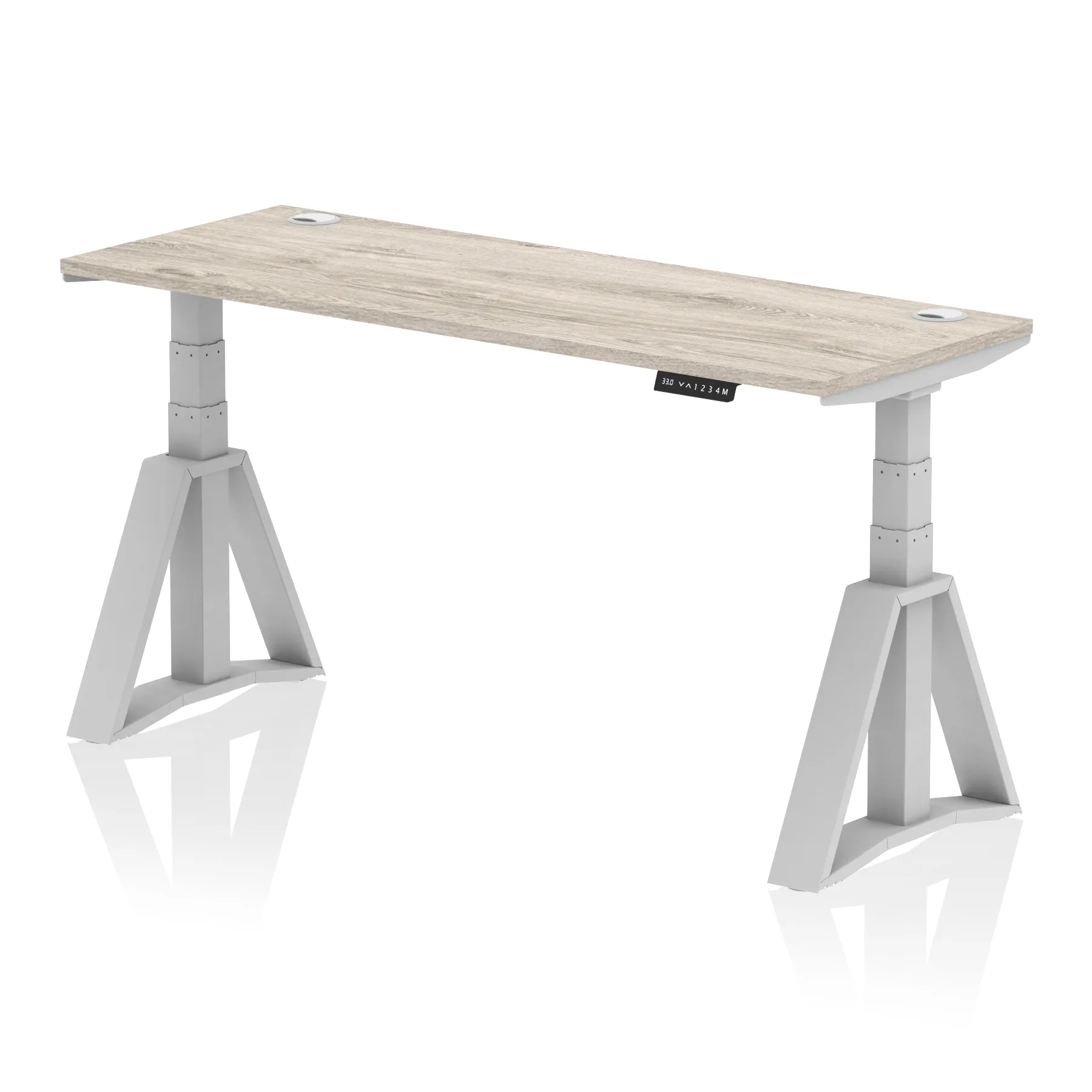 Air Height Adjustable Slimline Desk With Cable Ports With Piste Foot