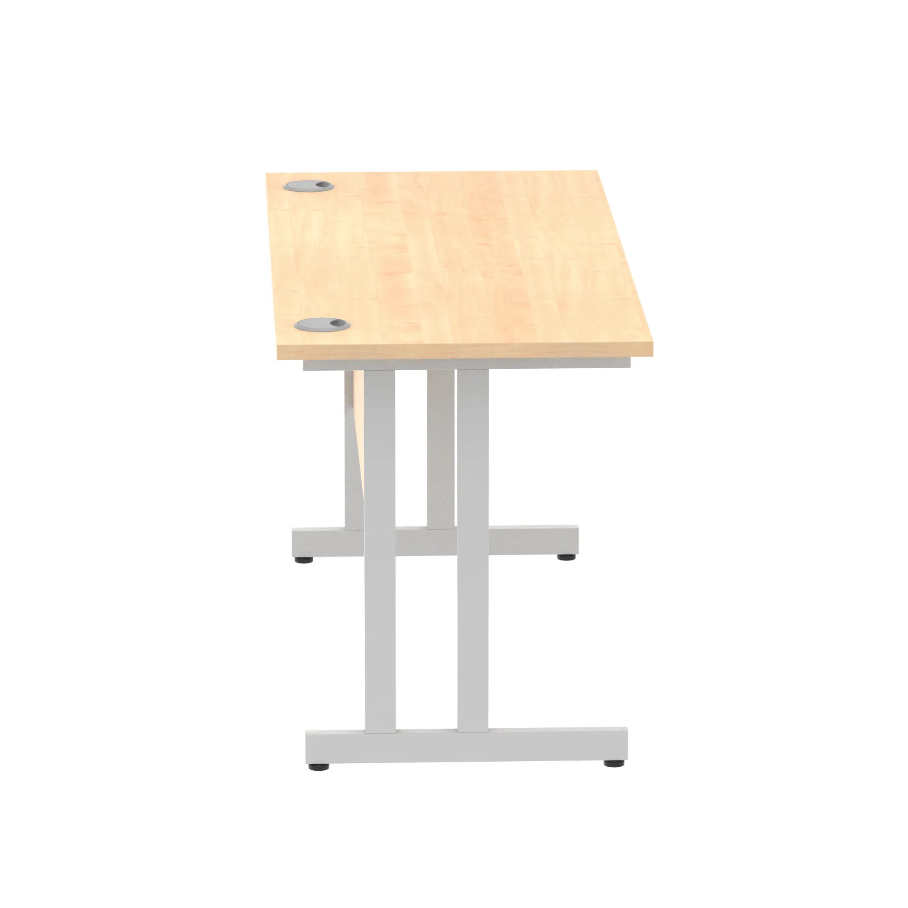 Impulse contract desk | 25mm tops | Heat resistant melamine finish | 18mm modesty panels | 2mm protective abs edging | Silver coated double strut legs | 2 cable ports | Height adjustable feet | Steel to steel fixings | 2 modesty panels slots |Deep set modesty panel (5″) allows for compatibility of most screen clamp fittings | Weight Capacity 135Kg