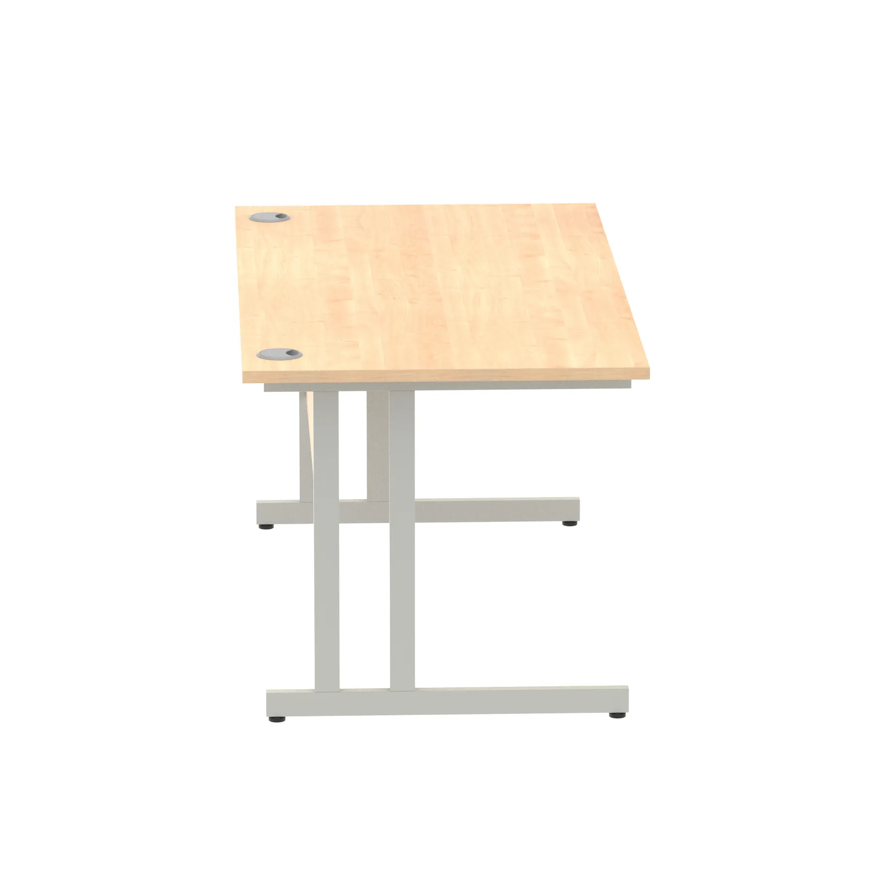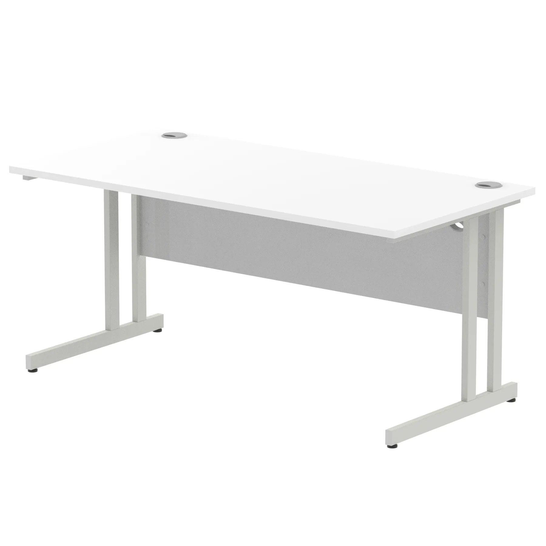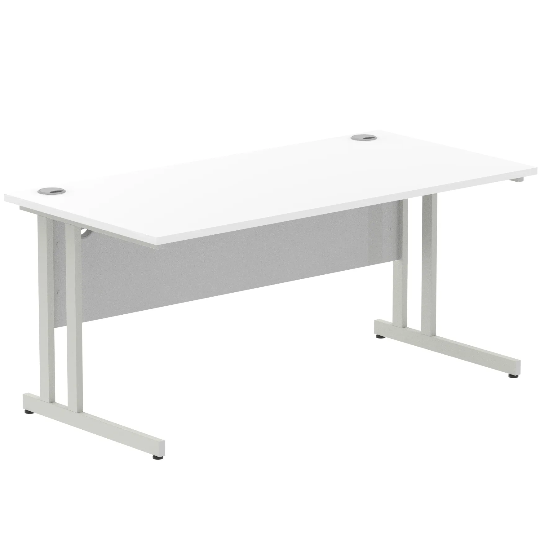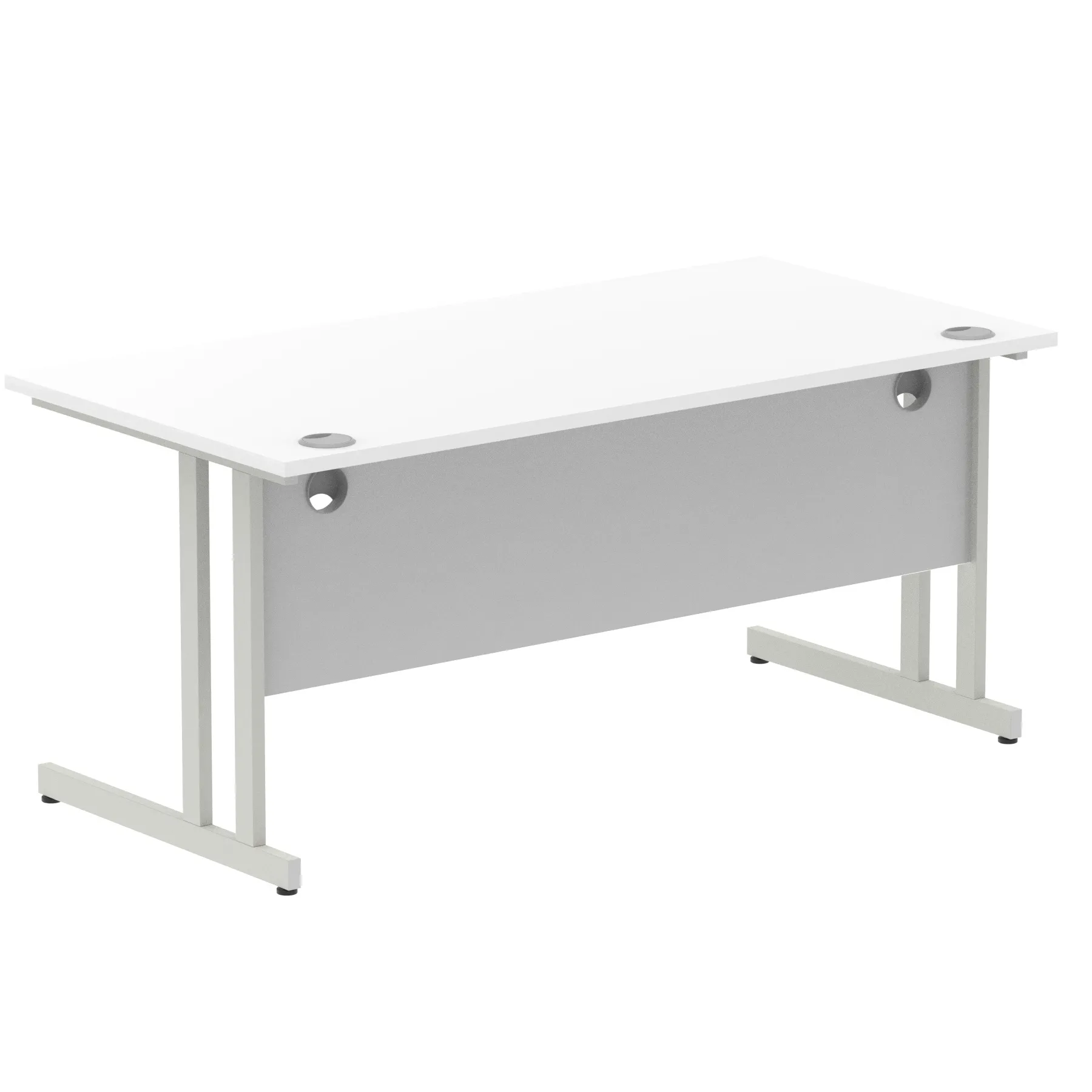 Impulse contract desk | 25mm tops | Heat resistant melamine finish | 18mm modesty panels | 2mm protective abs edging | Silver coated double strut legs | 2 cable ports | Height adjustable feet | Steel to steel fixings | 2 modesty panels slots Deep set modesty panel (5″) allows for compatibility of most screen clamp fittings | Weight Capacity 135Kg