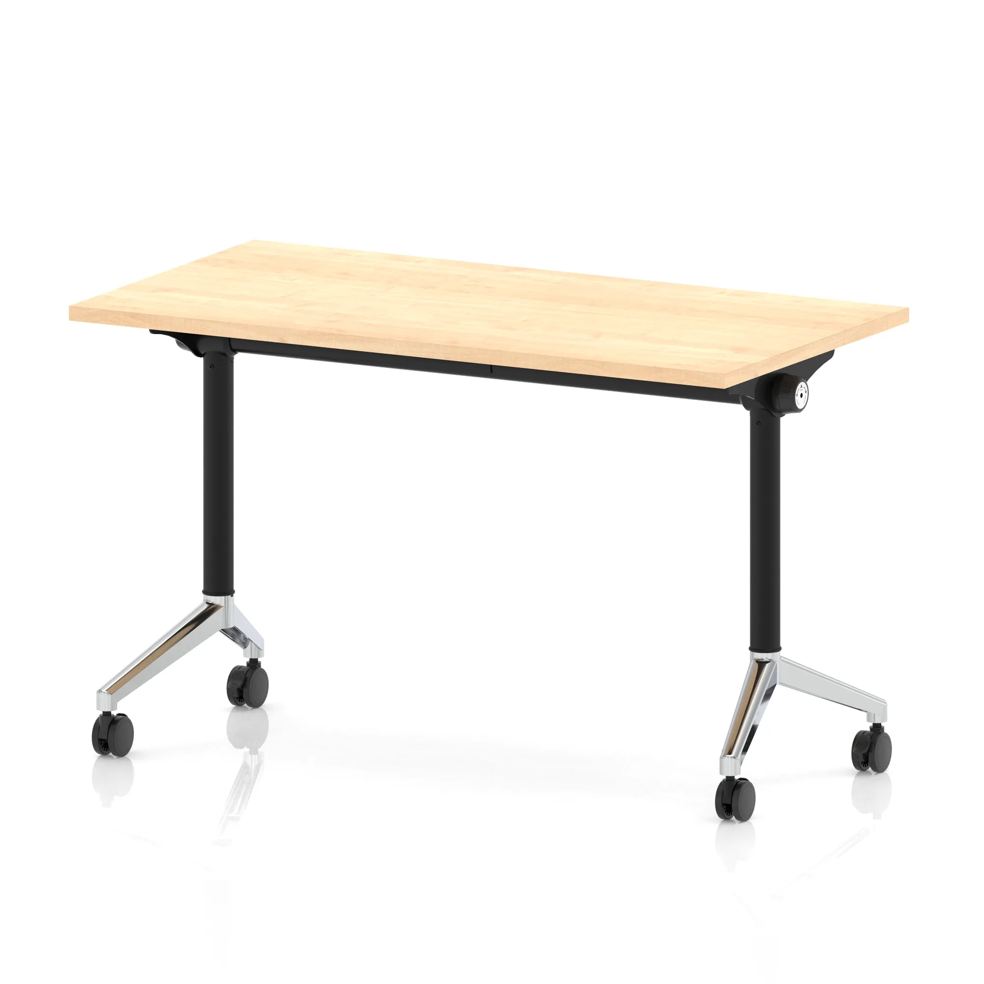 • Impulse Plus freestanding meeting table • Rectangular table flips easily for space efficient storage • Provides excellent team working environment • 25mm thick top • Attractive black and silver coated leg • 2mm abs protective edging • Heat resistant melamine finish • Steel to steel fittings • Weight Capacity: 100Kg