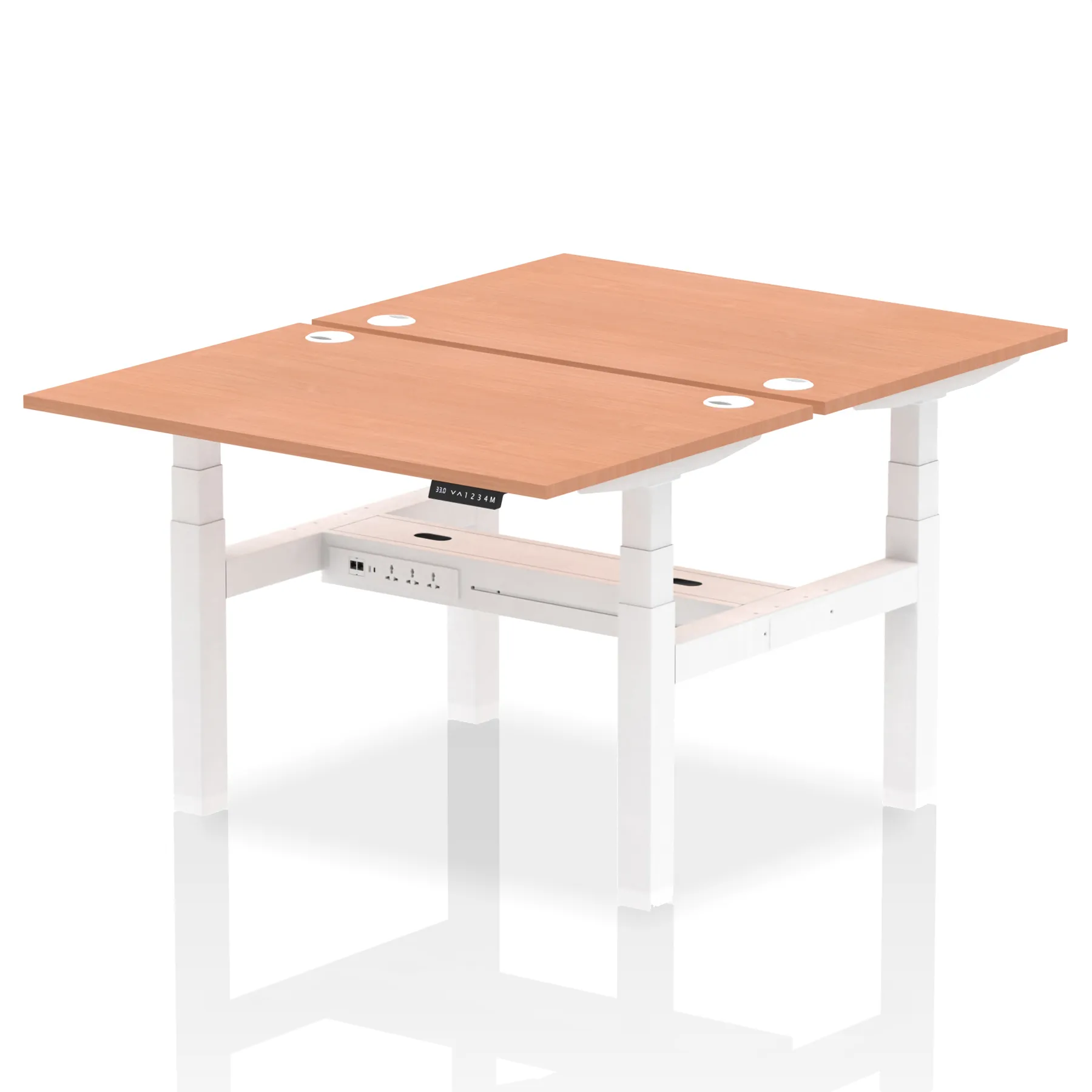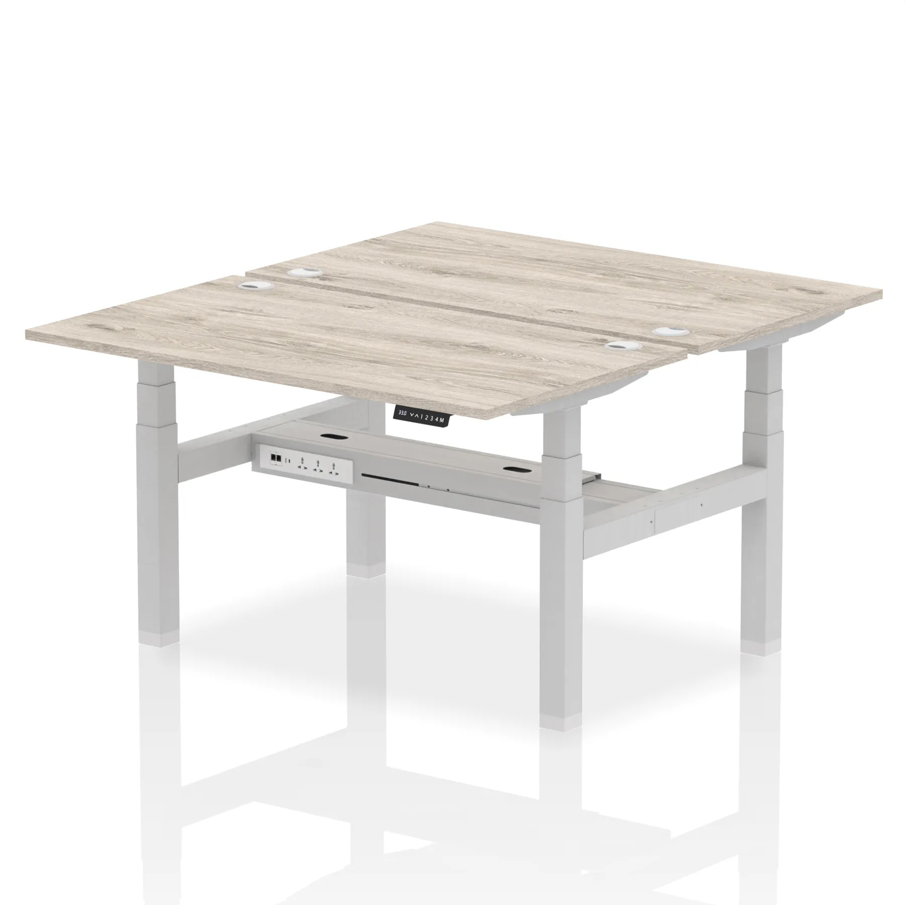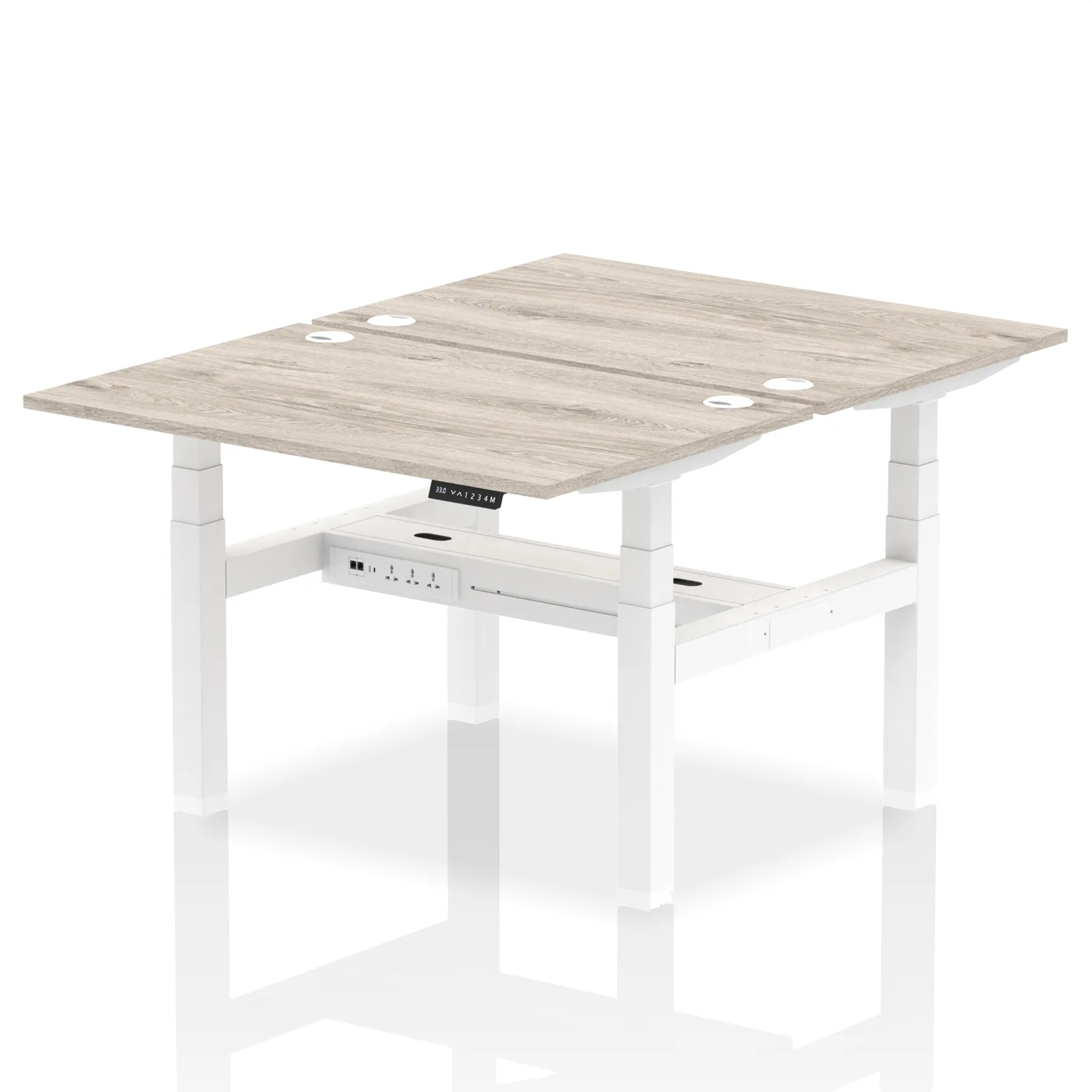 The Air Back-to-Back Height Adjustable Desk, designed for two, is the epitome of efficiency and connectivity. Each desk comes equipped with two Ethernet ports, a USB port, a USB-C port, and three UK plugs, catering to all digital needs. Integrated cable ports ensure a tidy workspace. Adjustable height options offer ergonomic comfort. This desk is the ultimate solution for teams seeking a connected, efficient, and adaptable workspace.