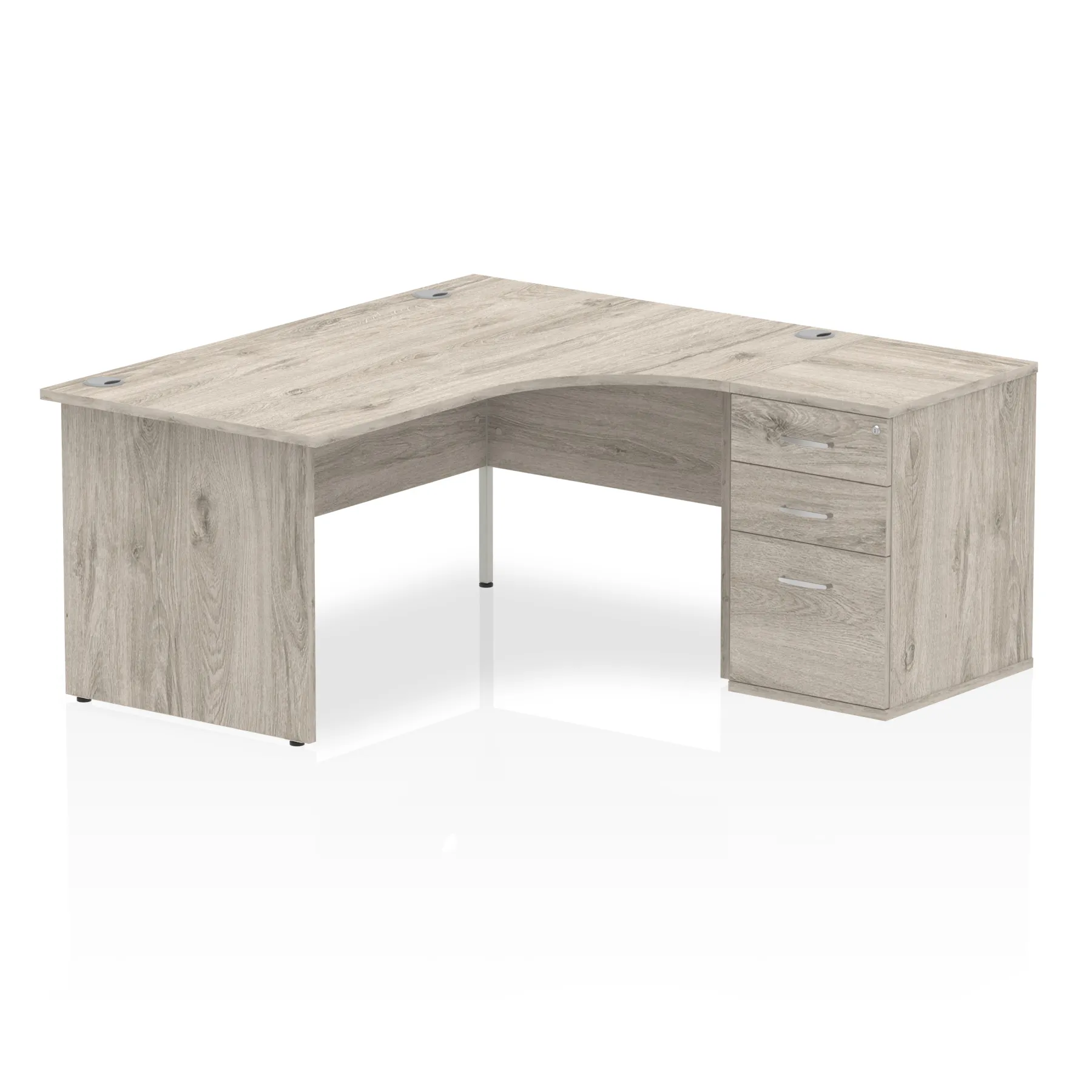 Impulse contract workstation | 25mm tops | Desk and pedestal combined | Heat resistant beech melamine finish | 18mm modesty panel | 2mm protective abs edging | Matching panel ends | Multiple cable ports | Height adjustable feet | Steel to steel fixings | Modesty panel slots wire slots| Deep set modesty panel (5″) allows for compatibility of most screen clamp fittings